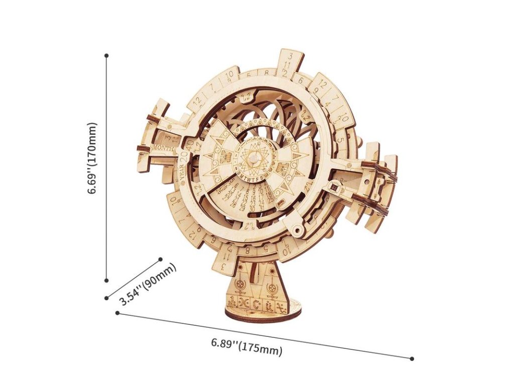 Ideální pro všechny, kdo začínají s mechanickými skládačkami. Stavebnice stolního kalendáře z překližky. S jeho pomocí můžete plánovat data až do roku 2040. Otáčením velkého kolečka nejprve vyberte rok a otáčením druhého vyberte měsíc, odkryjete kalendář na příslušný měsíc ve zvoleném roce. Jedinečný dárek pro všechny milovníky kutilství, luxusní interiérová dekorace do pokoje či kanceláře. Skládačka je dodávána v nesloženém stavu, balena v krabici. Vybaveno detailním návodem k sestavení.