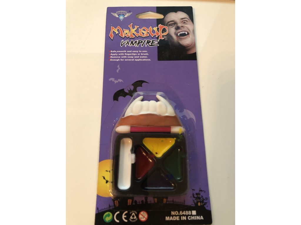 Sada 5 barev na obličej + upíří zuby. Odlíčení barev z dětského obličeje běžným pleťovým mlékem.