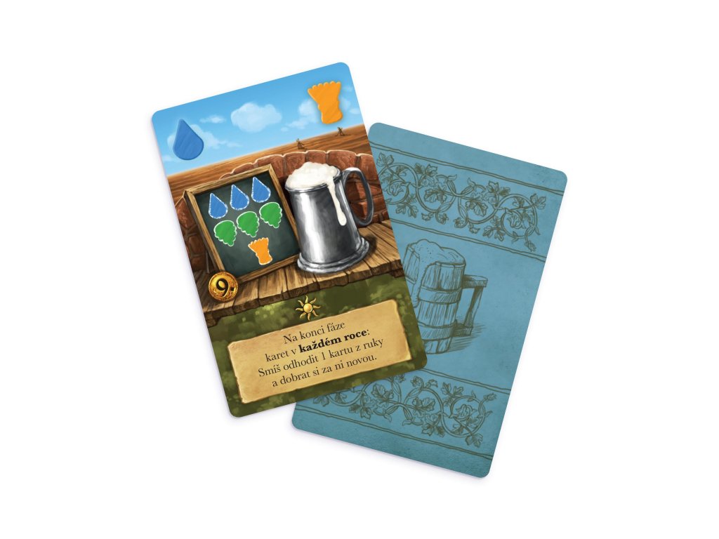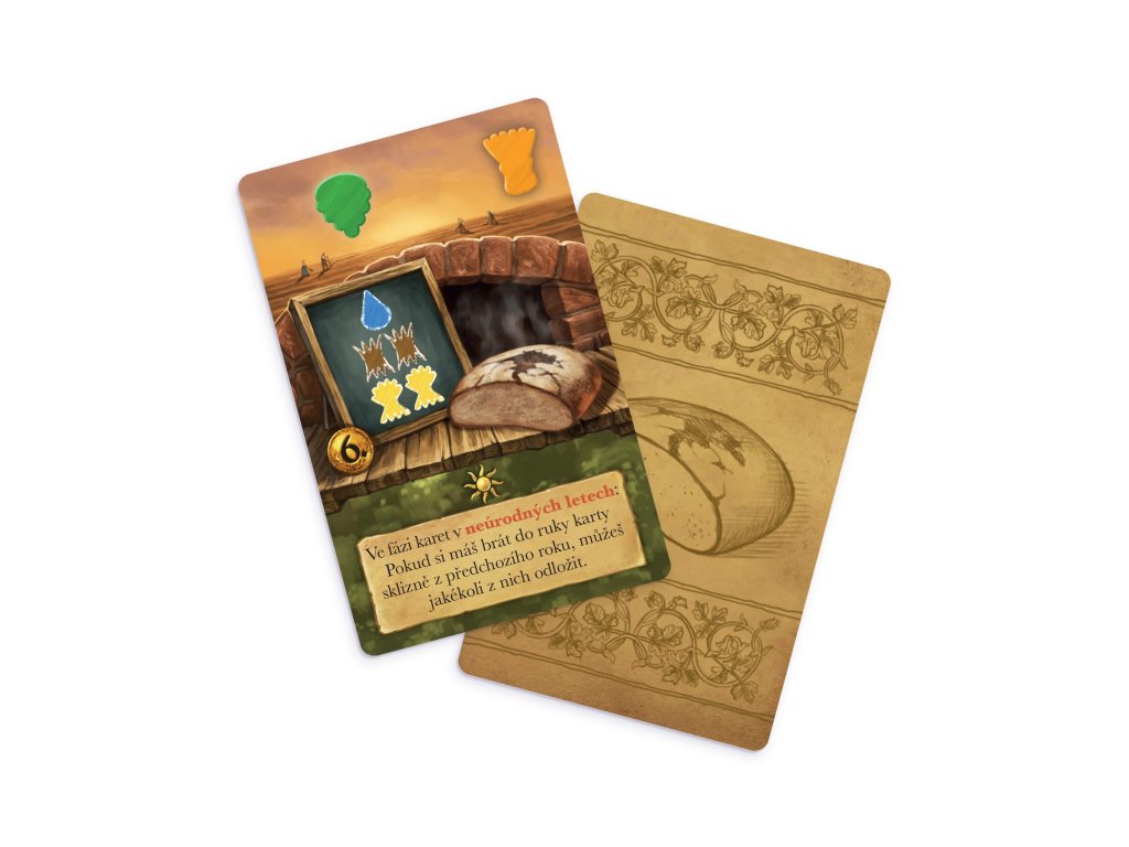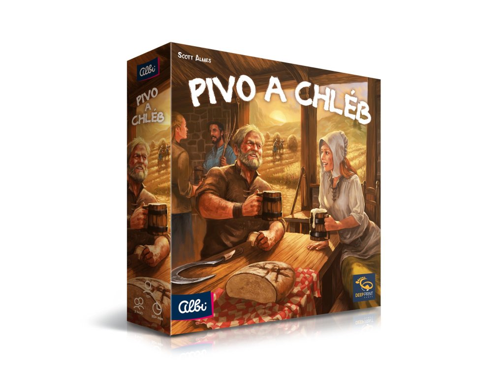 Pivo a chléb je karetní hra s víceúčelovými kartami pro dva hráče. Její chytrá struktura střídajících se kol přináší fascinující zvrat v interakci hráčů, tvorbě karet a správě zdrojů. Dvě vesnice založené na úrodných pozemcích někdejšího kláštera si udržují dvojí tradici vaření piva a pečení chleba. Ačkoli sdílejí pole a zdroje, stále jsou hrdé na svou přátelskou rivalitu, kdy se navzájem překonávají ve výrobě. Každý z hráčů představuje jednu z těchto vesnic. Během šesti let - které se střídají s úrodnými a suchými - musí hráči sladit své povinnosti při sklízení a skladování surovin, výrobě piva a chleba, jejich prodeji za mince a vylepšování svého zařízení. Vyhrává vesnice s vyšším počtem bodů. Hra Pivo a chléb obsahuje: herní plán, 60 karet, 84 dřevěných žetonů surovin, 1 dřevěný větrný mlýn, 1 dřevěný ukazatel roků, 1 bodovací blok a 1 pravidla. 2 hráči věk: 10+ doba hry: 30 minut
