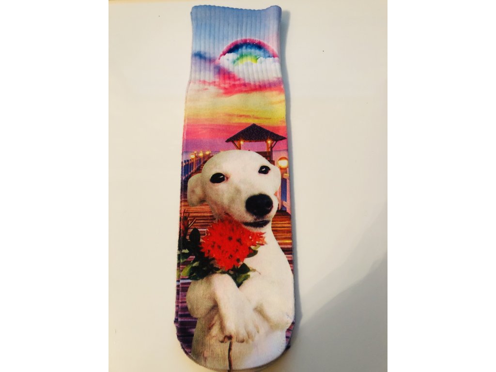 Dámské ponožky s celopotiskem zvířátek, velikost 38-41 Pes s kytkou