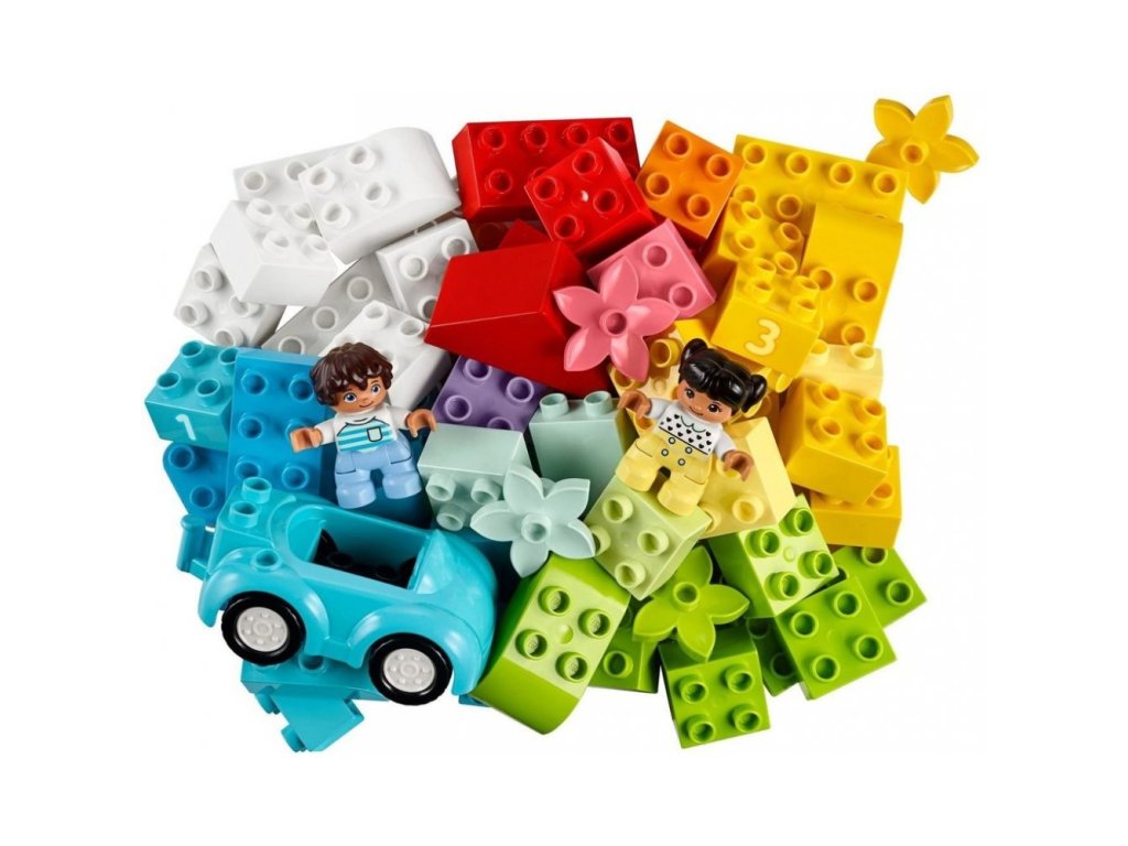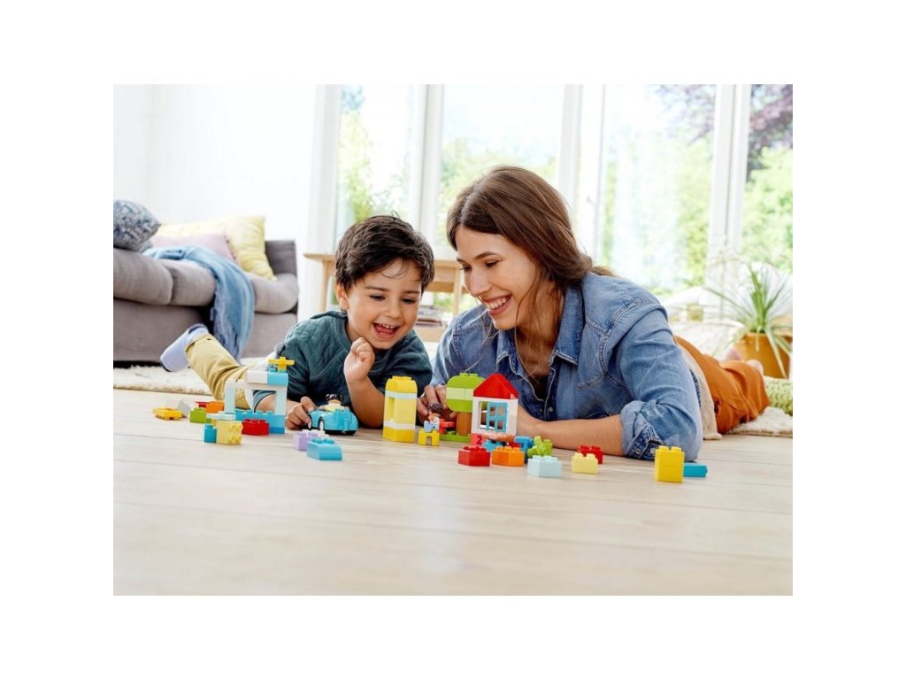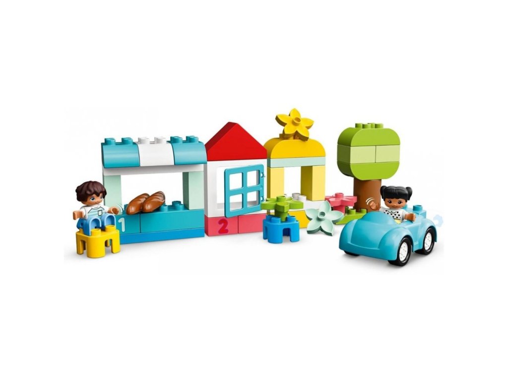 Sada barevných LEGO kostek v počtu 65 kusů, které zahrnují například okno, květiny, chleba, auto s pohyblivými koly. Holčičky i kluci mohou stavět podle předlohy na boxu nebo podle vlastní fantazie. V boxu najdou také kostičky s číslicemi 1 - 3.