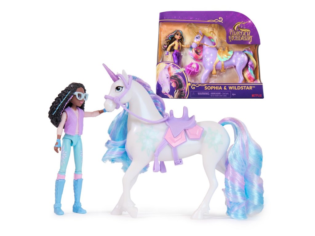 Oslavte pouto mezi jezdcem a jednorožcem se sadou figurek Layly a Vločky! Tato sada inspirovaná animovaným seriálem od NETFLIXu a bestsellerovou knižní sérií, kde přátelství drží otěže osudu, podnítí nekončící nápaditá vyprávění. 11,5cm figurka Layly se pyšní realisticky věrnými detaily a 7 klouby pro dynamické pózy. Vločka měří bezmála 13 cm a doplňuje vzhled Layly svými znaky ledové magie a modro-bílo-růžovou hřívou a ocasem, které lze kartáčovat (kartáč je součástí balení). Při hraní posaďte Laylu na Vločku a jeďte za dobrodružstvím! Díky odnímatelné uzdě a sedlu zůstane Layla bezpečně na svém místě a z Vločky nespadne. Chcete-li objevit všechny způsoby, jak si užít svět Jednorožčí akademie se svými oblíbenými postavami, prohlédněte si další malé panenky, jako jsou Sofie, Ava, Isabel a Valentina spolu s jejich jednorožci (sady se prodávají samostatně) a rozšiřte svůj kouzelný svět! Určeno pro děti, které mají rády jednorožce a koně, panenky a doplňky, hračky pro panenky, sběratelské předměty, plyšové hračky a další. Hračky s tematikou Jednorožčí akademie jsou perfektním dárkem pro dívky k narozeninám nebo jakékoli jiné příležitosti. Zažijte okouzlující dobrodružství v Jednorožčí akademii se sadou figurek Layly a Vločky!