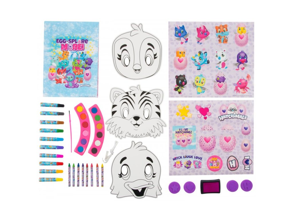 Kreslící sada Hatchimals – balení obsahuje razítka, štětec,
