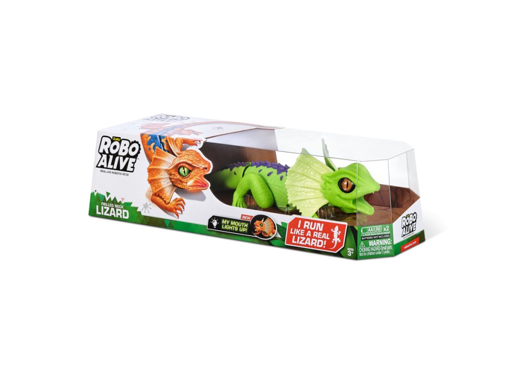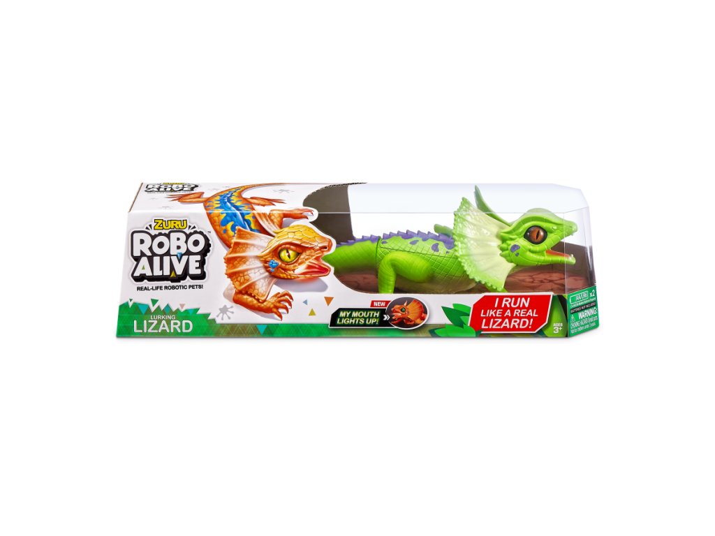 Robo Alive Robotická oranžová ještěrka. Oranžová ještěrka s modrými skvrnami vypadá jako živá. Může skutečně chodit, běhat a pohybovat hlavou.