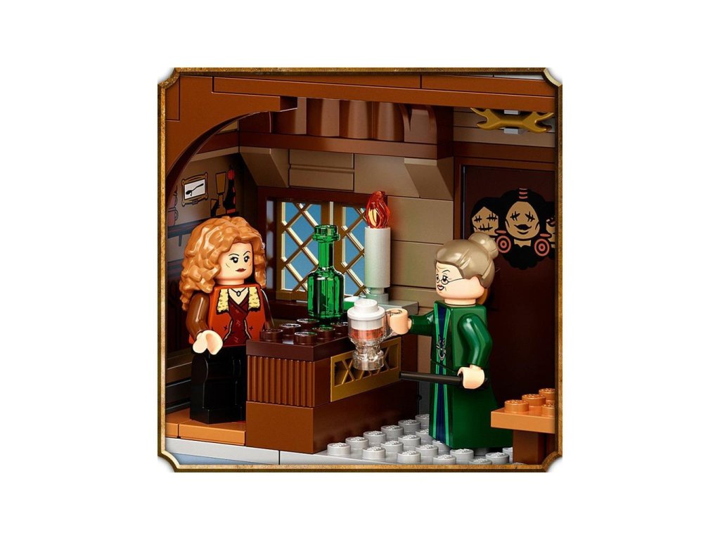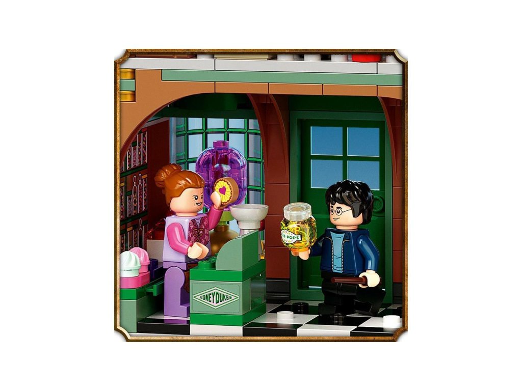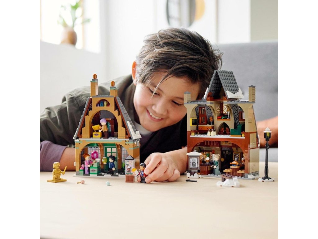 Zasněžené Prasinky jsou do detailu propracované a skvěle poslouží k hraní i na výstavku. V sadě najdete také 6 minifigurek – Harryho Pottera, Deana Thomase, profesorku McGonagallovou, madam Rosmertu, pana Flumea a paní Flumeovou – a navíc spoustu parádních funkcí, nábytků a doplňků, které inspirují děti k přehrávání filmových scén nebo vymýšlení svých vlastních dobrodružství. Nechybí dvoupatrová cukrárna Medový ráj ani hospoda U Tří košťat, takže o zábavu nebude nouze. 3 menší modely pak poskytnou ještě větší porci herní inspirace a možností. Samozřejmě se můžete těšit i na sběratelské prvky: exkluzivní zlatou minifigurku Rona Weasleyho a 4 náhodné kouzelnické karty!" „• Úchvatný herní a výstavní model Prasinek ze světa Harryho Pottera. • Obsahuje 6 minifigurek, 1 zlatou minifigurku a spoustu doplňků. • Děti navštíví a prozkoumají cukrárnu Medový ráj a krčmu U Tří košťat. • Bezpočet fantastických dobrodružství pro mladé čarodějky a kouzelníky ve věku od 8 let. • Obě budovy jsou plné autentických detailů. • Nechybí pouliční lampa, lavička a tabule s plakátem hledaného Siriuse Blacka. • Obsahuje zlatou minifigurku Rona Weasleyho a 4 náhodné kouzelnické karty. • Stavebnice od LEGO® Harry Potter™ umožní každému dítěti stát se součástí filmového světa kouzel. • LEGO® stavebnice splňují přísné oborové standardy kvality. • LEGO® dílky splňují přísné globální požadavky na bezpečnost.“