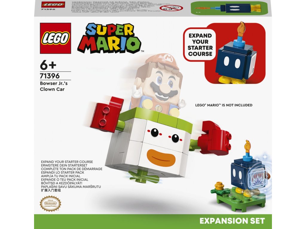 Uhánějte do akce s rozšiřujícím setem LEGO® Super Mario™ Bowser Jr. a Clown Car (71396) pro děti od 6 let. Děti díky němu obohatí svůj startovací set o sestavitelný model vozítka Junior Clown Car a figurku LEGO Bob-omba. Umístěte LEGO® Maria a/nebo LEGO® Luigiho (figurky nejsou součástí) do Junior Clown Car a zaleťte si pro extra porci digitálních mincí. (Poznámka: Pro interaktivní hraní je potřeba startovací set 71360 nebo 71387.)