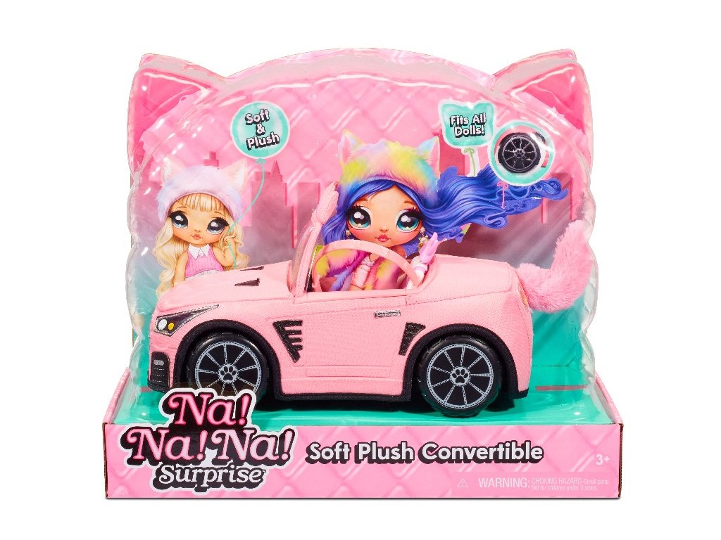 Na! Na! Na! fashion panenky mohou cestovat stylově v prvním měkkém látkovém autě! Je to velmi pohodlné a originální auto s kolečky a hodí se pro Na! Na! Na! panenky všech velikostí.Obsah balení:• měkké látkové auto v rozkošném stylovém potisku • 4 kola, která se opravdu točí. Panenky nejsou součástí hračky.