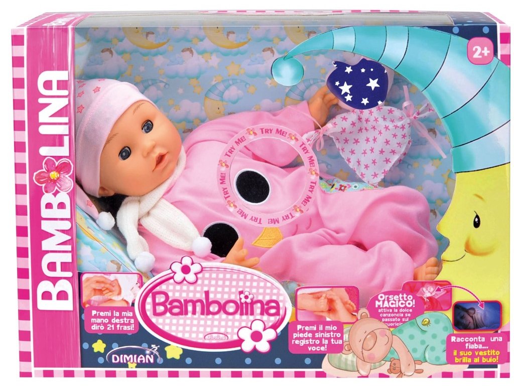 Krásná panenka Bambolina Jasmine umí až 50 českých slov. Jasmínka po stisknutí bříška začne povídat. Pojď si s ní hrát, poví ti například, mami mám tě ráda.