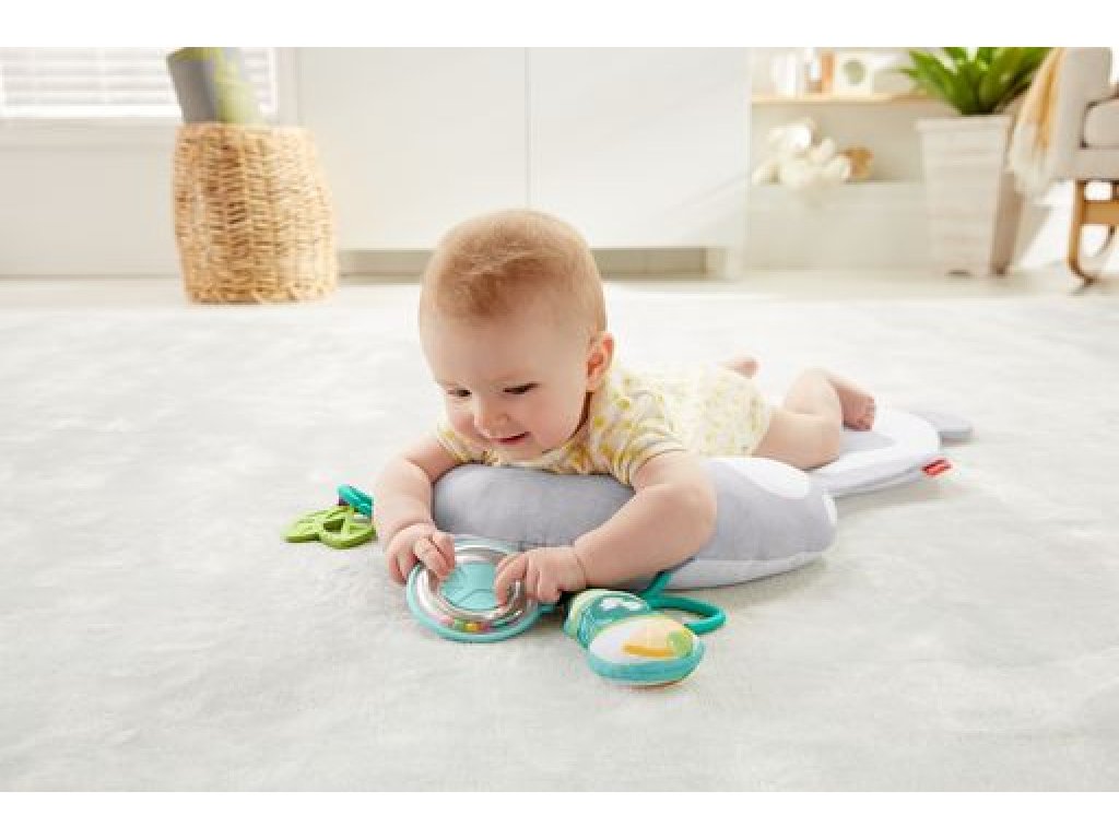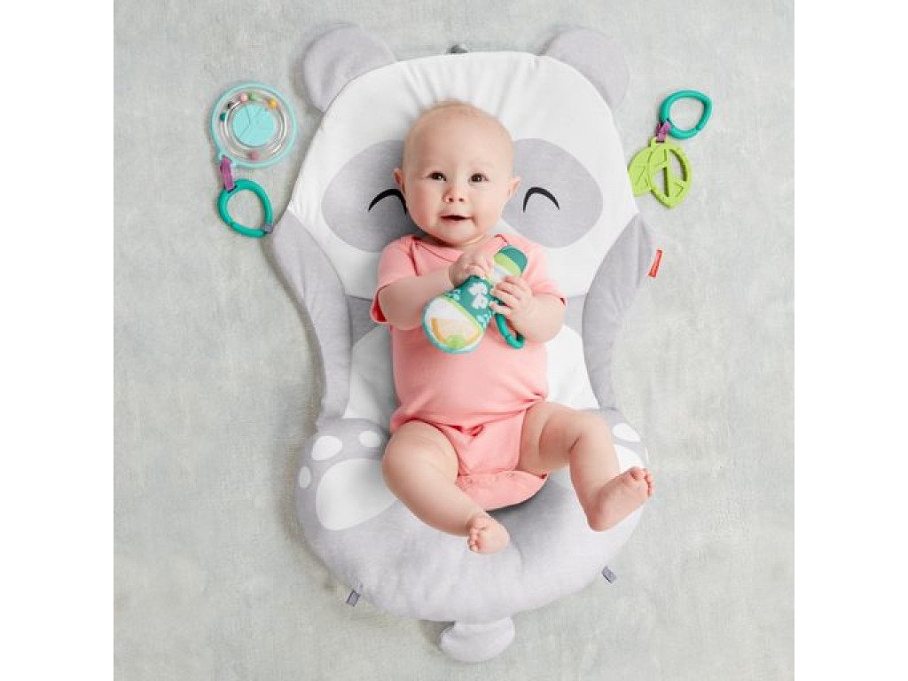 Fisher-Price Hrací dečka panda poskytne vašemu děťátku skvělé místo, kde může pást koníčky a zažít spoustu zábavy doma nebo na cestách. Plyšová a tvarovaná podložka má vestavěný měkký klínek, který pomáhá podepřít vaše maličké během pasení koníčků. Součástí jsou čtyři vzrušující aktivity pro vaše děťátko, které je může zvesela objevovat. Zahrnují chrastítko ve tvaru znaku míru, kousátko ve tvaru lístečku, šustící lahvičku na vodu a veselý zvuk rolniček vycházející z pandina ocásku. Když už musíte jít, snadno dečku zabalíte a vezmete za praktické držátko. Tato hrací dečka ideálně rozvíjí všechny smysly vašeho děťátka včetně hrubé motoriky, která je velmi důležitá pro jeho malé rostoucí svaly.