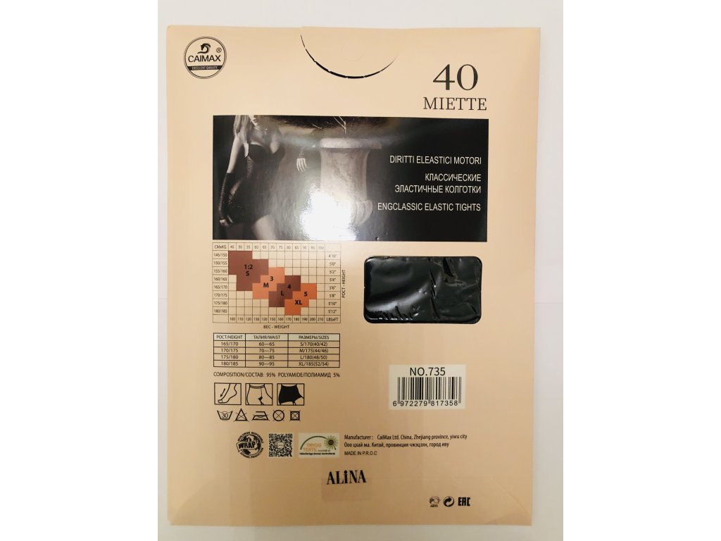 Elegantní punčochové kalhoty s puntíky. Punčochy jsou elastické, průhledné a hebké na omak. Vyrobeno v Číně Složení: 95% polyamid (syntetické vlákno odolné vůči odřeninám a trhání) 5% elastan (vysoká pružnost a stálý tvar, odolnost vůči mechanickému poškození) Barva - černá
