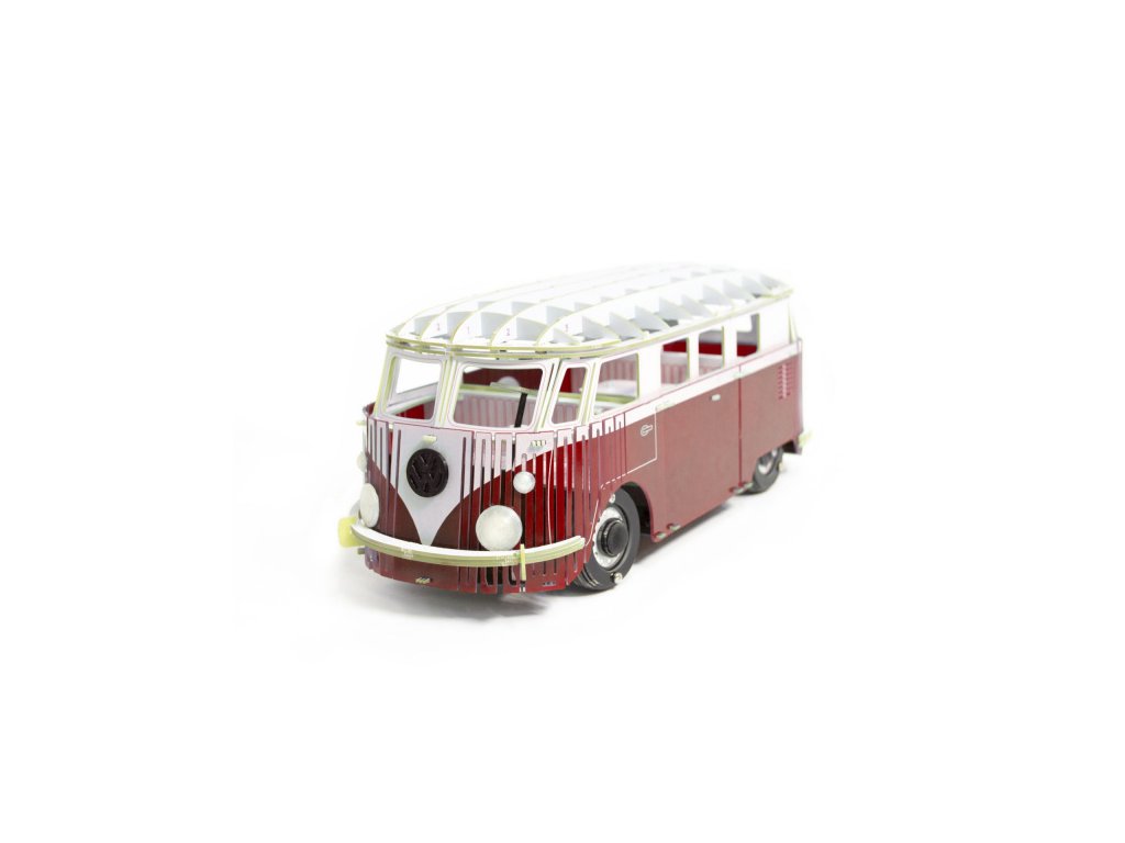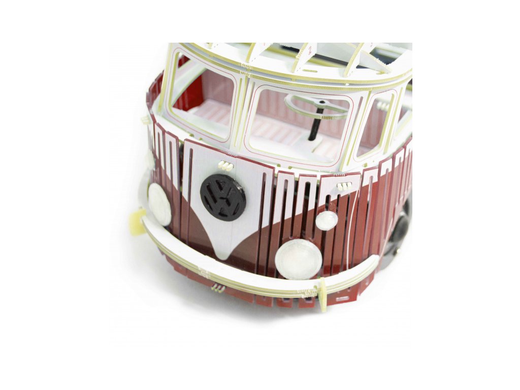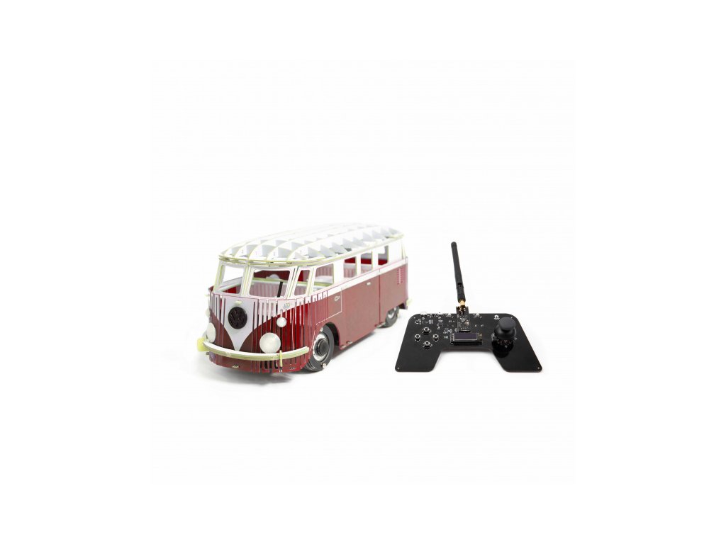 S touto sadou můžete vyrobit plně funkční RC minivan (červená barva), model Volkwagen Transporter, ikonické auto beatnické generace. Nepotřebujete lepidlo ani páječku. Stačí secvaknout jednotlivé součásti stavebnice. Nakonec vložíte klasické AAA baterie a můžete začít řídit. Montáž trvá přibližně 1-2 hodiny.
