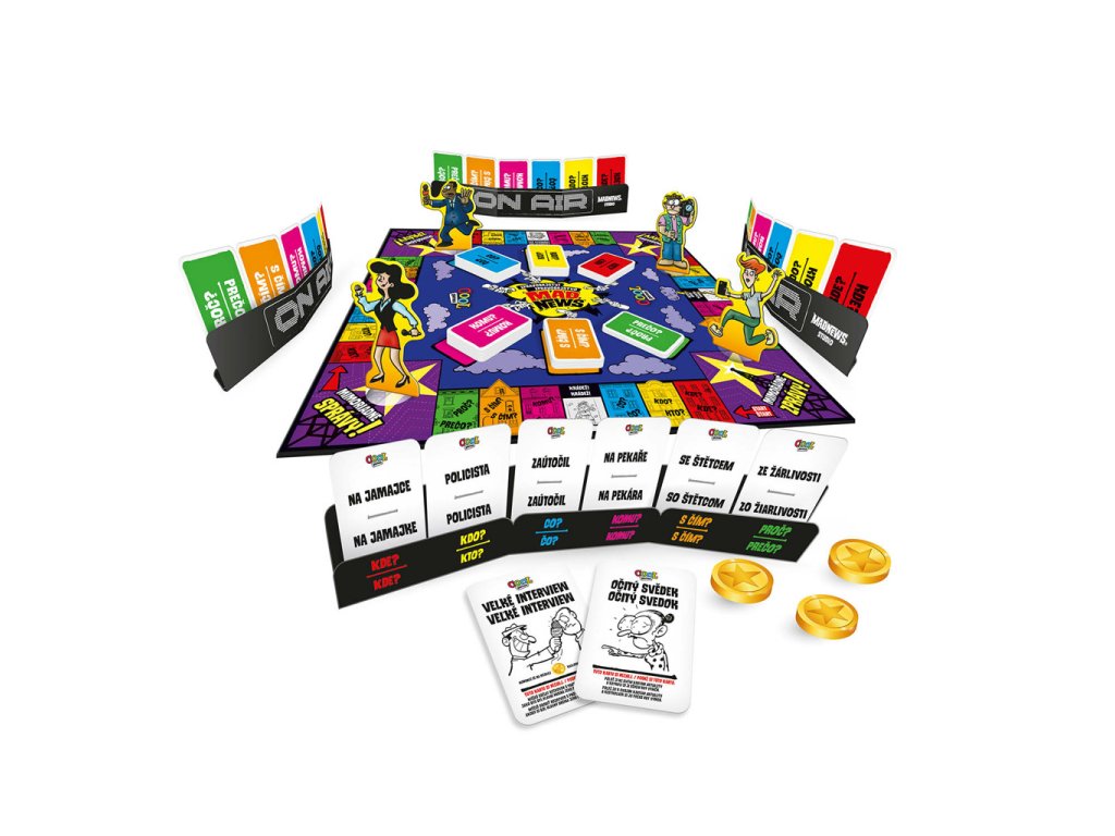 Staňte se opravdovým reportérem. Vytvořte originální titulek a představte svým spoluhráčům svou bláznivou reportáž. Máte na to půl minuty. Vaši spoluhráči se promění ve zvědavé publikum a mohou vás zpovídat. Vyhrává ten, kdo získá nejvíc Pulizerovek. Na začátku hry se domluvte, jak dlouho chcete hrát: 30, 60 nebo 90 minut. Po uplynutí vámi stanoveného času hra končí. Vyberte své zpravodajské studio a vezměte si karty: KDE?, KDO?, CO?, S ČÍM? a PROČ?. Každý titulek a reportáž musí obsahovat slovo z těchto karet. Hoďte kostkou a postupujte po hrací ploše. Řiďte se pokyny na políčkách, kde vaše figurka zastaví. Vyměňte svou kartu AKTUALITY, staňte se hrdinou příběhu vašeho protihráče nebo nastal čas na vaši reportáž. Vaši spoluhráči se mohou zapojit a dávat ti záludné otázky, po uplynutí půl minuty budou hlasovat, jak se jim vaše reportáž líbila. Víc zdvižených palců znamená Pulizerovku. Věk: 15 +. Hráči: 2 – 6. Obsah: Hrací plocha, 6 sad karet AKTUALITY, 6 figurek reportérů, 1 hrací plocha, 1 přesýpací hodiny (30 sekund), 6 zpravodajských studií a návod.
