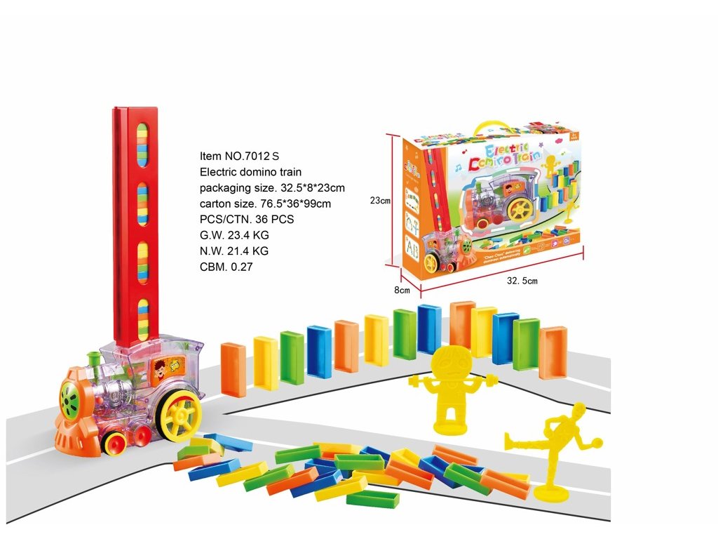 Mašinka s dominem. Výrobek vyžaduje 2× AA baterie- které nejsou součástí balení. Výrobek je vhodné od 3 let.