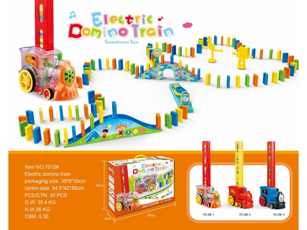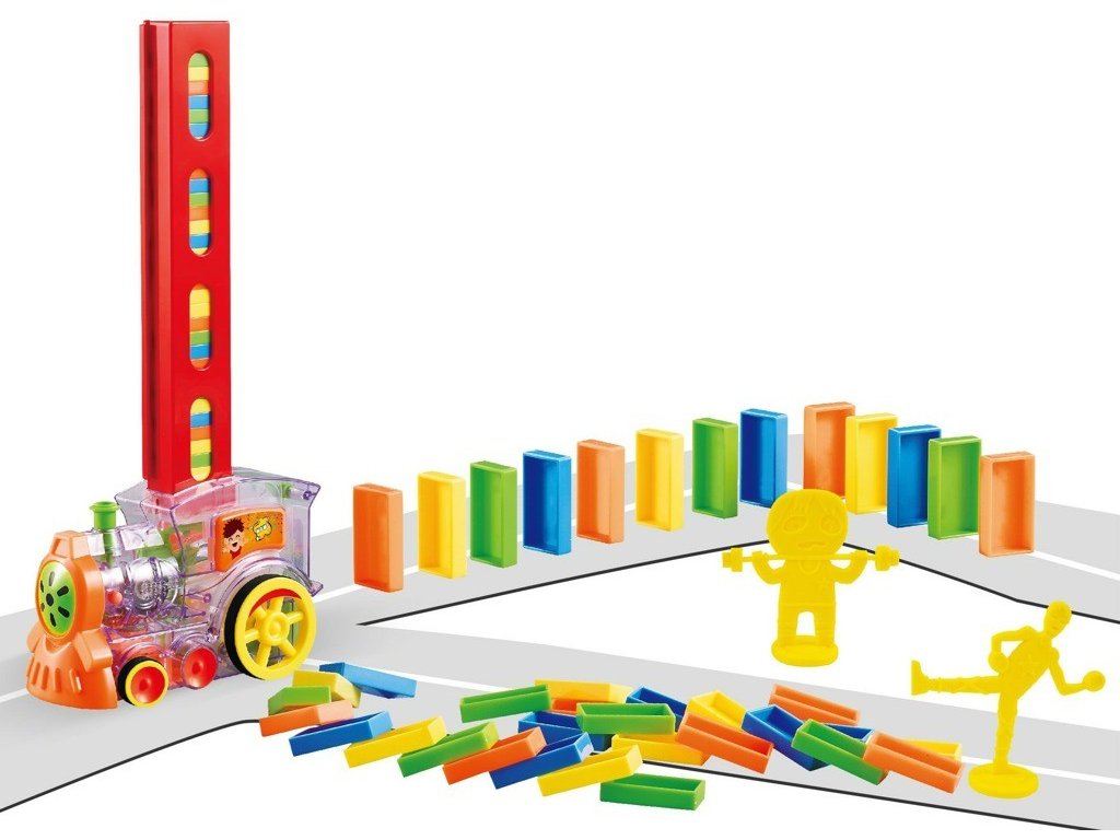Mašinka s dominem. Výrobek vyžaduje 2× AA baterie- které nejsou součástí balení. Výrobek je vhodné od 3 let.