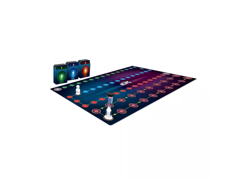 Hra obsahuje: 1 oboustranný herní plán, 300 karet, 1 figurku, 1 přesýpací hodiny, 3 krabičky na karty a pravidla hry.