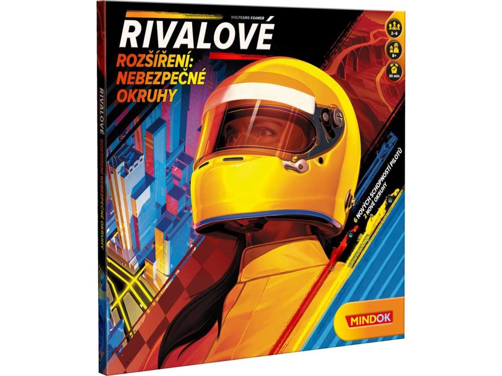 Nebezpečné okruhy jsou rozšířením k závodní hře Rivalové. Obsahuje především dva nové závodní okruhy - město a poušť a také poskytuje pilotům prostřednictvím karet nové jízdní schopnosti. Městský okruh žene řvoucí monoposty do ulic, které nebyly stavěny na provoz takto výkonných strojů. Okruh v poušti zase přináší jiná nebezpečí - sebenepatrnější chybička se může krutě vymstít. Už jen dokončení závodu na těchto okruzích představuje skutečnou výzvu. Vítězství znamená životní úspěch. Dokážete sebrat odvahu a vsednout do kokpitu? Kdo zvládne tyto okruhy plné nástrah, zapíše se do historie a stane se legendou! Na pouštní trati se vyskytují místa, kde je povrch závodní dráhy poničen výmoly a prasklinami v asfaltu. Je znečištěn nánosy písku a štěrku. Jednotlivá pole jsou příliš malá. Je proto možné jimi pouze projíždět, nikoliv na nich zastavovat. Městský (noční) okruh naproti tomu obsahuje křížení a rozdvojení tratě. Rozšíření není samostatně hratelné. Hra obsahuje: oboustranný herní plán - město a poušť 6 karet schopností pilotů Věk 8+