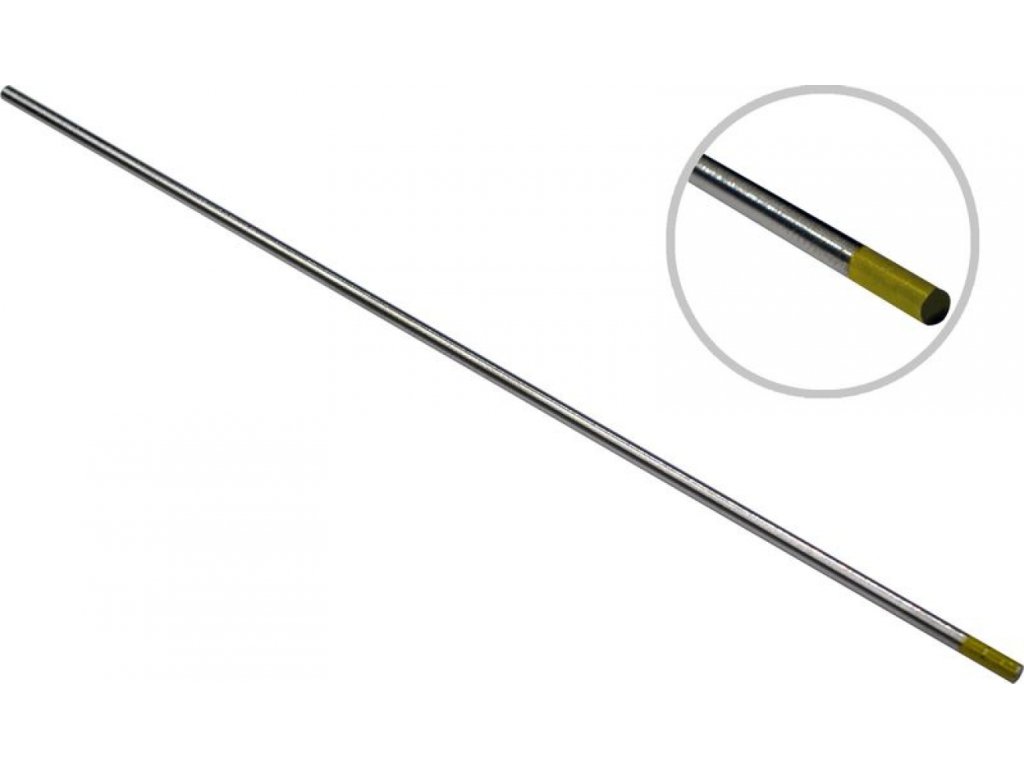 1ks wolframové elektrody, vhodné pro invertory GIS 130 WIG (20058), GIS 160 WIG/HF (20059). Svařování nelegovaných i legovaných ocelí, slitin vanadu, hliníku apod.; složení: 98,5% W, 1,5% LaO2; dle normy ČSN EN ISO 6848 pro obloukové svařování a řezání.