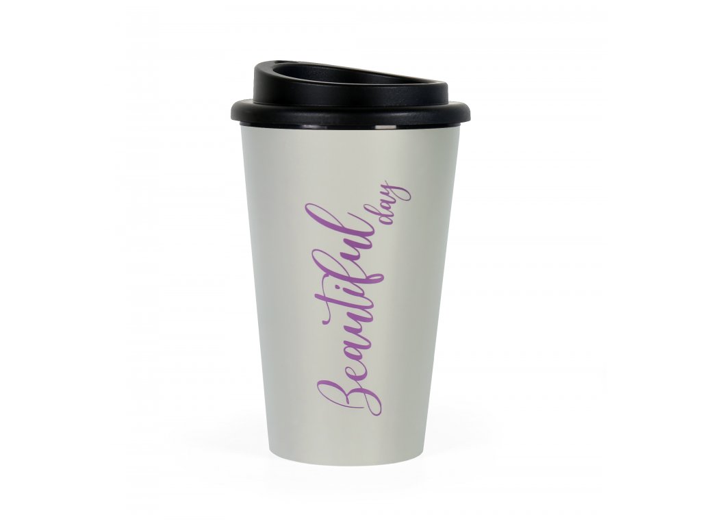 Hrnek má zaklapávací víčko spolu s otevřeným pítkem (není tedy těsnící).