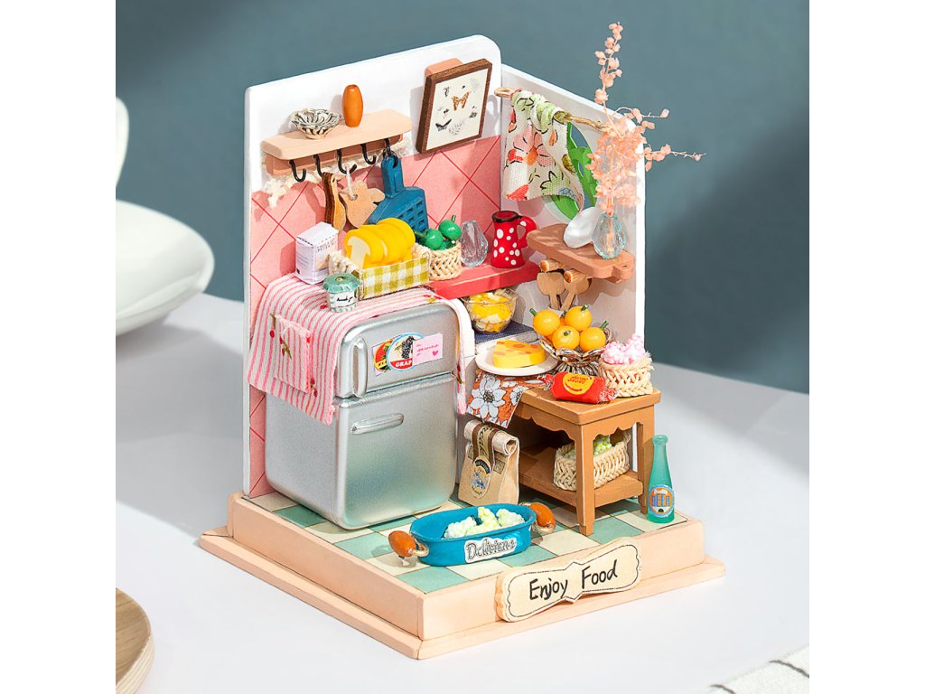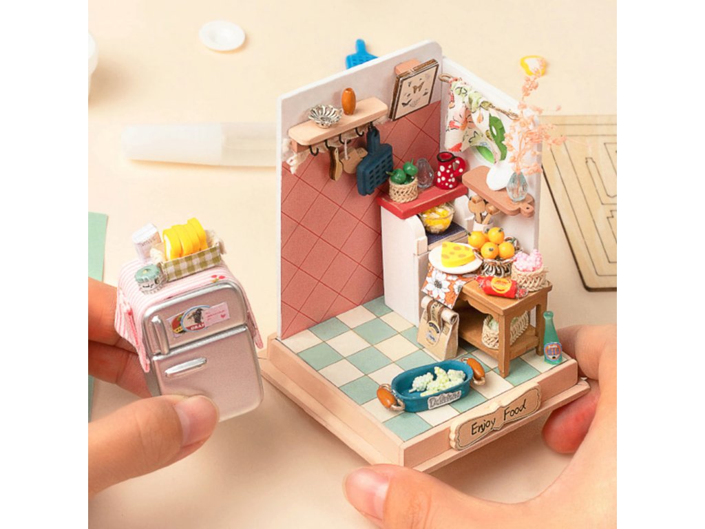 Vychutnejte si přehlídku barev, vůní a chutí v atmosféře domácké kuchyně. Objevte svět detailních miniatur Robotime, výtvarných stavebnic, zde zvláště v měřítku 1:30, při jejichž sestavování strávíte příjemné chvíle a výsledkem můžete zkrášlit zákoutí svého pokoje. Výtvarné sady jsou rozděleny do několika řad, můžete si zvolit, zda je Vám bližší obytný prostor, nebo podnik. Každá ze stavebnic je dodávána v rozloženém stavu. V krabici spolu se všemi potřebnými součástmi a podrobným návodem naleznete také lepidlo i barvy. K sestavení a úpravám je zapotřebí štětec a pinzeta. Hlavní vlastnosti:stavebnice, lepidlo i barvyodhadovaná doba sestavení 5 hodinke stavbě vyžaduje štětec a pinzetu
